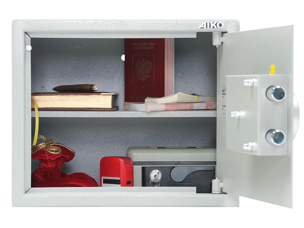 Компактный лёгкий сейф, рассчитанный на хранение документации, печатей, некрупных сумм денег, травматического оружия и прочих вещей, доступ к которым желательно ограничить. Благодаря невысокой стоимости этот сейф является весьма популярным среди клиентов, желающих установить его в квартире или офисе с охраной, куда сложно попасть постороннему. Однако уровень его защиты невысок, и держать в нём по-настоящему солидные ценности не следует.Сейфы линии Aiko целиком отвечают требованиям МВД РФ к хранению короткоствольного оружия и сертифицированы на устойчивость к взлому по госстандарту.