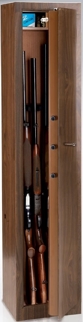 Элитный оружейный сейф, изысканно отделанный под дерево, производства Италии. Сейф рассчитан на комфортное содержание гладкоствольного и нарезного оружия, боеприпасов, а при желании – ещё и небольшого количества ценных предметов. Благодаря эстетичному дизайну этот сейф не только предоставит вам защиту от доступа нежелательных лиц к оружию, но и сделается истинным украшением интерьера; прекрасно подойдёт для установки как дома, так и в офисе. Достойный уровень устойчивости к взлому подтверждён строгими европейскими стандартами, а также российским ГОСТ Р 50862-2005.
